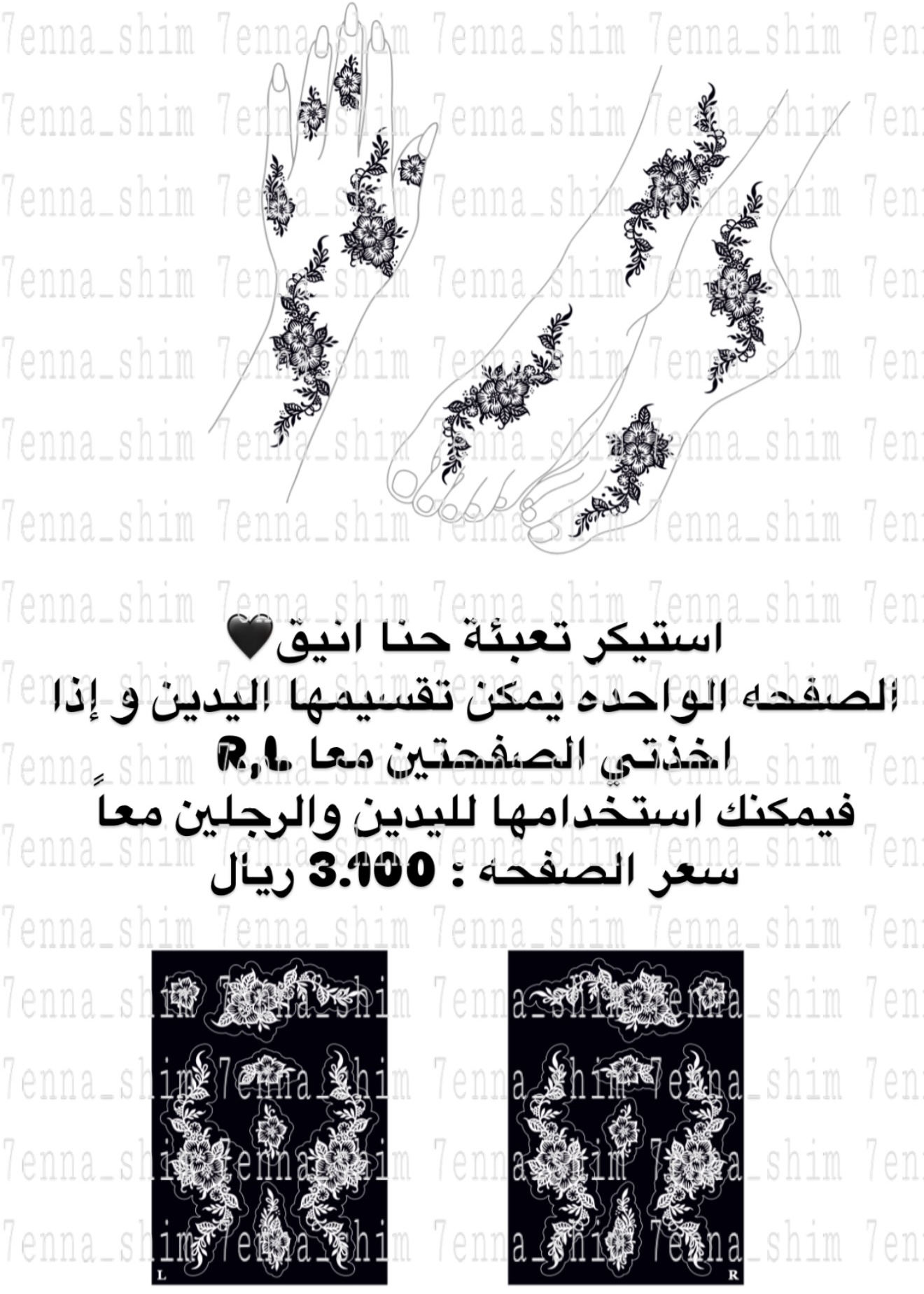 ‏Unique henna stencils ‏tow page(R,L) is enough for two adult hands with feet ,