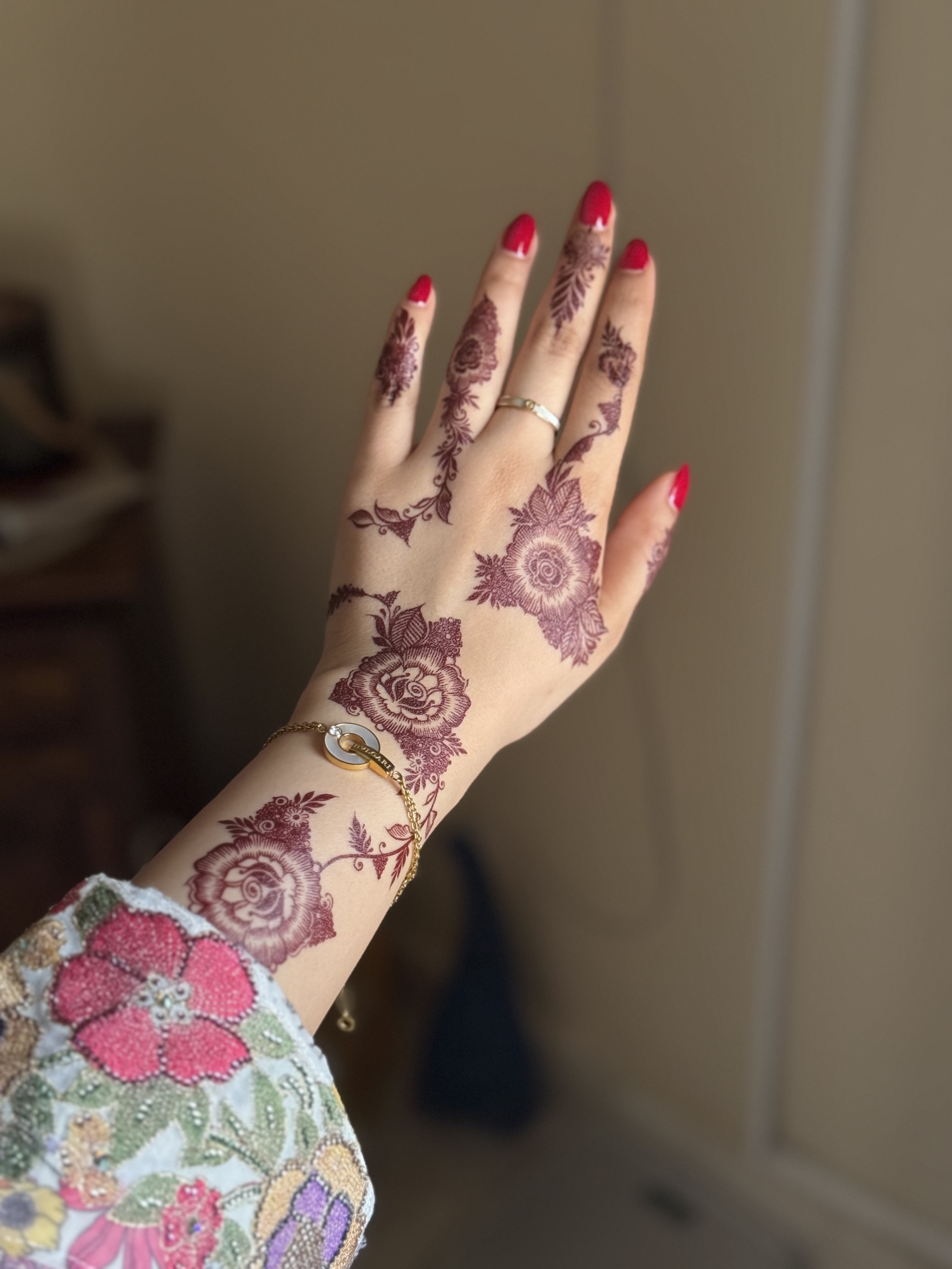 Modern and beautiful design for (Henna tattoo stickers) lasts on the hands from two to four days and you can remove it at any time