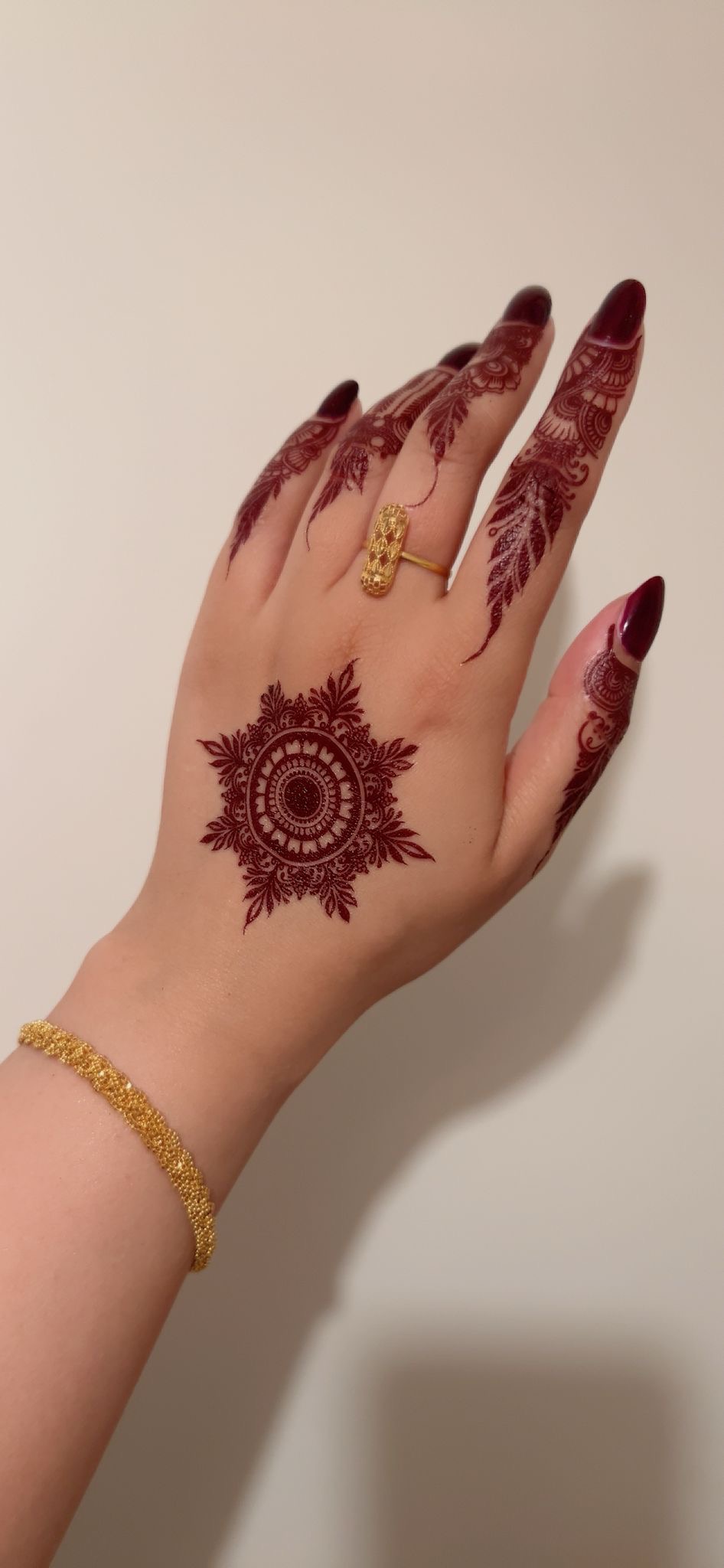 Indian design for (Henna tattoo stickers) lasts on the hands from two to four days and you can remove it at any time
